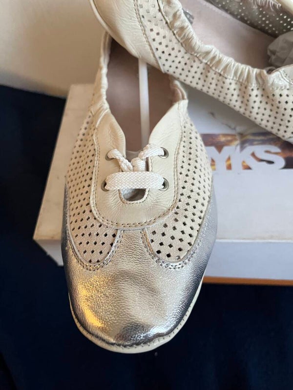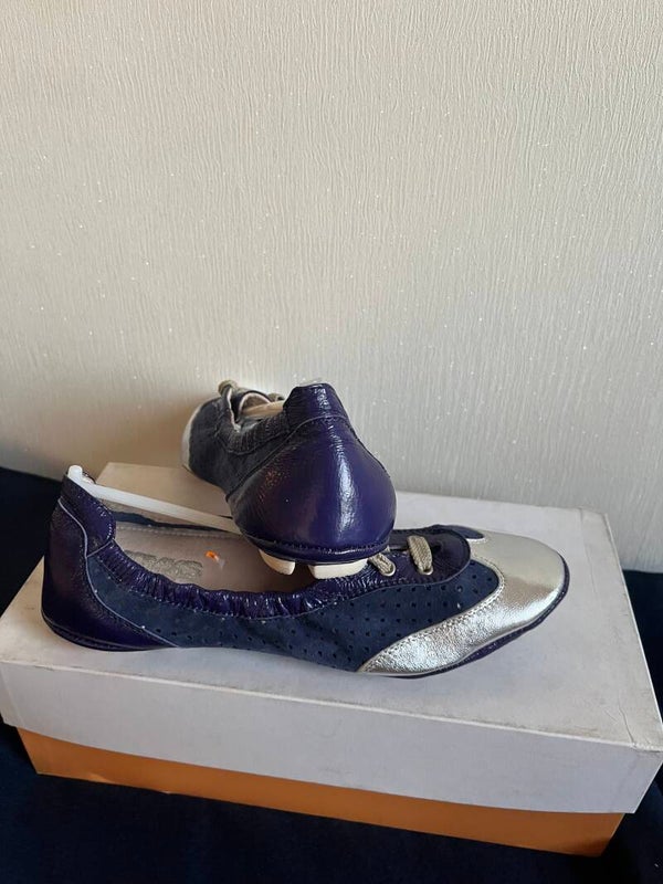 Mooie ballerina in blauw gecombineerd met zilver of beige en zilver