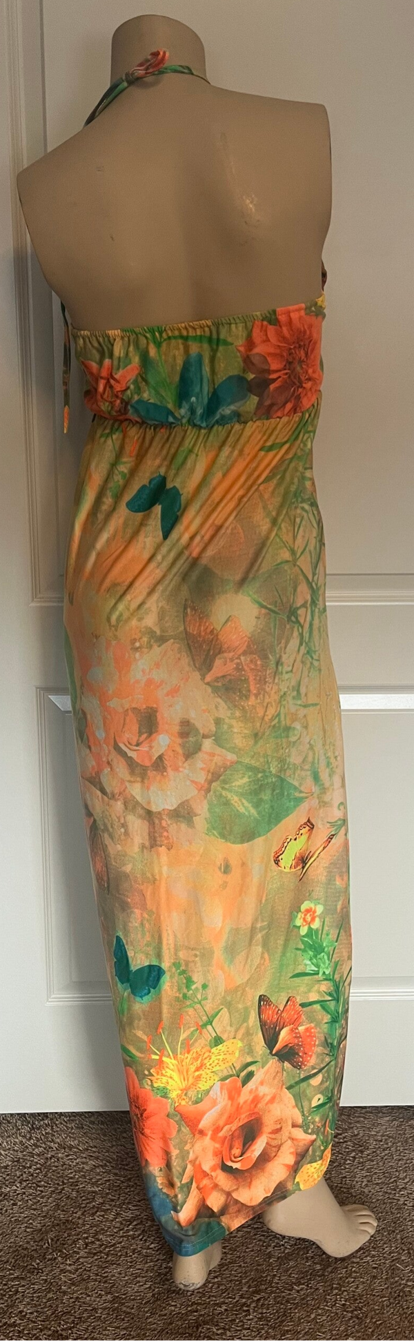 Maxijurk met bloem detail halter sluiting met klaren.
