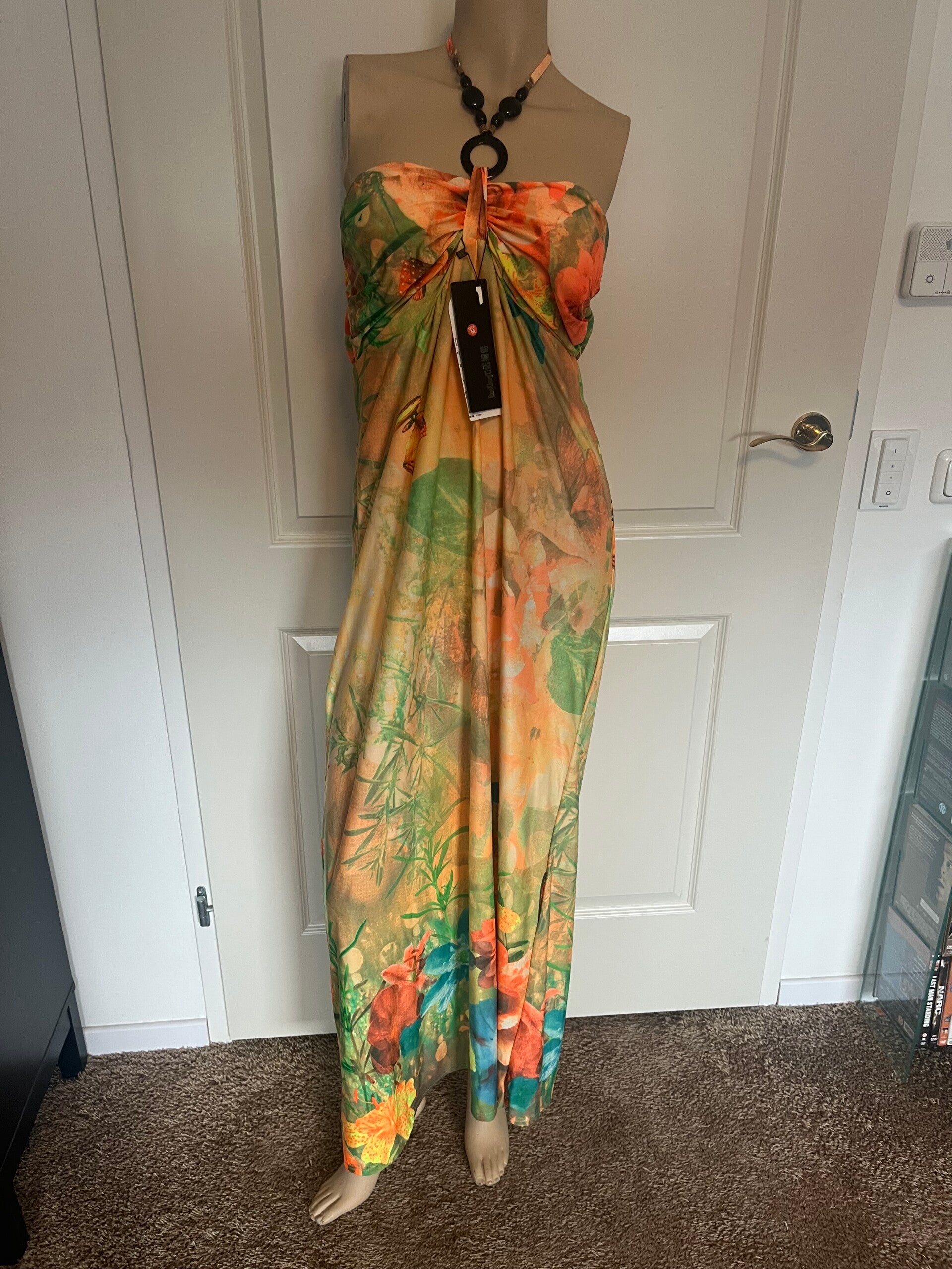 Maxijurk met bloem detailhalte sluiting met klaren. One size